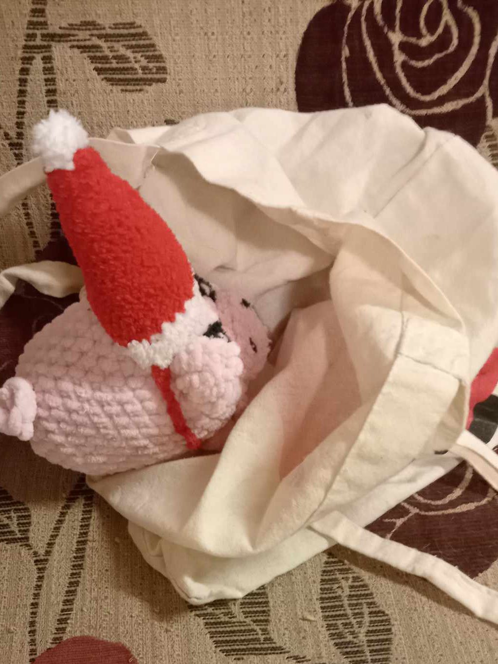 Kaikista suunnitelma oli hyvä. Elmo näytti kassia, johon pehmot voisivat ennen lähtöä kiivetä. Se ei näyttänyt tarpeeksi isolta kaikille, ei todellakaan. Se oli valkoinen ja ryppyinen, ja näytti lähinnä normaalilta kangaskassilta. Siihen oli kyllä painettu pieni tonttu, kuin se vinkkaisi, että kassi oli erikoinen. Pehmot kipusivat sisään ja siellä oli mahtavan paljon tilaa. Siis todellinen taikakassi. Kassi näytti sisältä lähinnä kokonaiselta isolta huoneelta. Jokaiselle pehmolle oli laitettu sinne omalla nimellä tyyny, jossa he voisivat odottaa uuteen kotiinsa pääsyä ja vaikka levätä. Siellä oli myös iso pöytä täynnä herkkuja ja nurkkaan oli pystytetty mahtava joulukuusi koristeineen. Kassin sisällä oli ihana lämmin tunnelma ja joulukoristeita ja valoja. Kenelläkään ei taatusti olisi kurja matka tulossa. Muppekin halusi nähdä kassin sisältä ja oli tietysti päätynyt herkuttelemaan sinne nähtyään kaikki upeat jouluruuat ja leivokset.