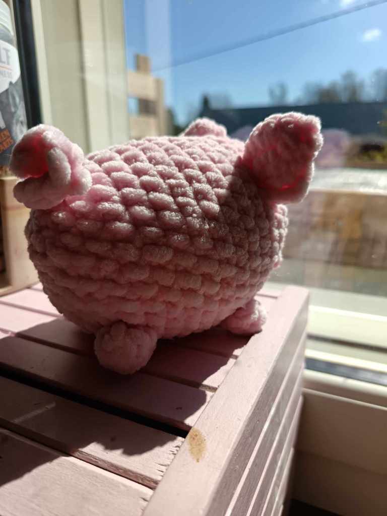 Muppe oli jo monena päivänä pyytänyt päästä aamulla ulos koiran kanssa, ja juossut pitkin ruohoa. Se tuntui niin hyvältä. Ruoho kutitti varpaita ja masua, kun siinä juoksi. Aurinkokin tuntui ihanalta pienessä kehossa, se lämmitti pientä possua ja Muppe niin toivoi voivansa paistatella siinä aina.