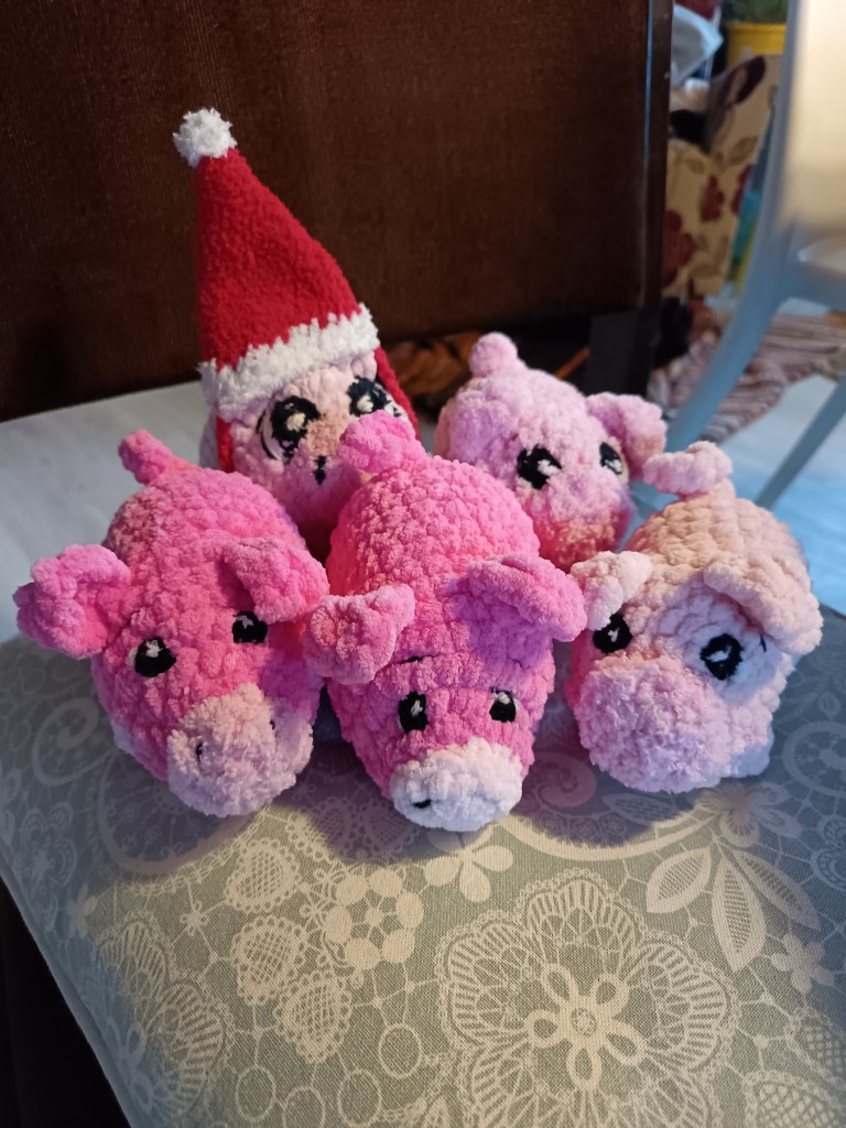 -Odotas hetki, emäntä kipaisi virkkuupisteelleen ja tuli hetken päästä takaisin. -Katsokaas tätä, emäntä näytti possuille pyöreää pörröistä irtonaista kärsää ja jatkoi -Sinulle oli tehtynä jo oma kärsä. tässä se on.