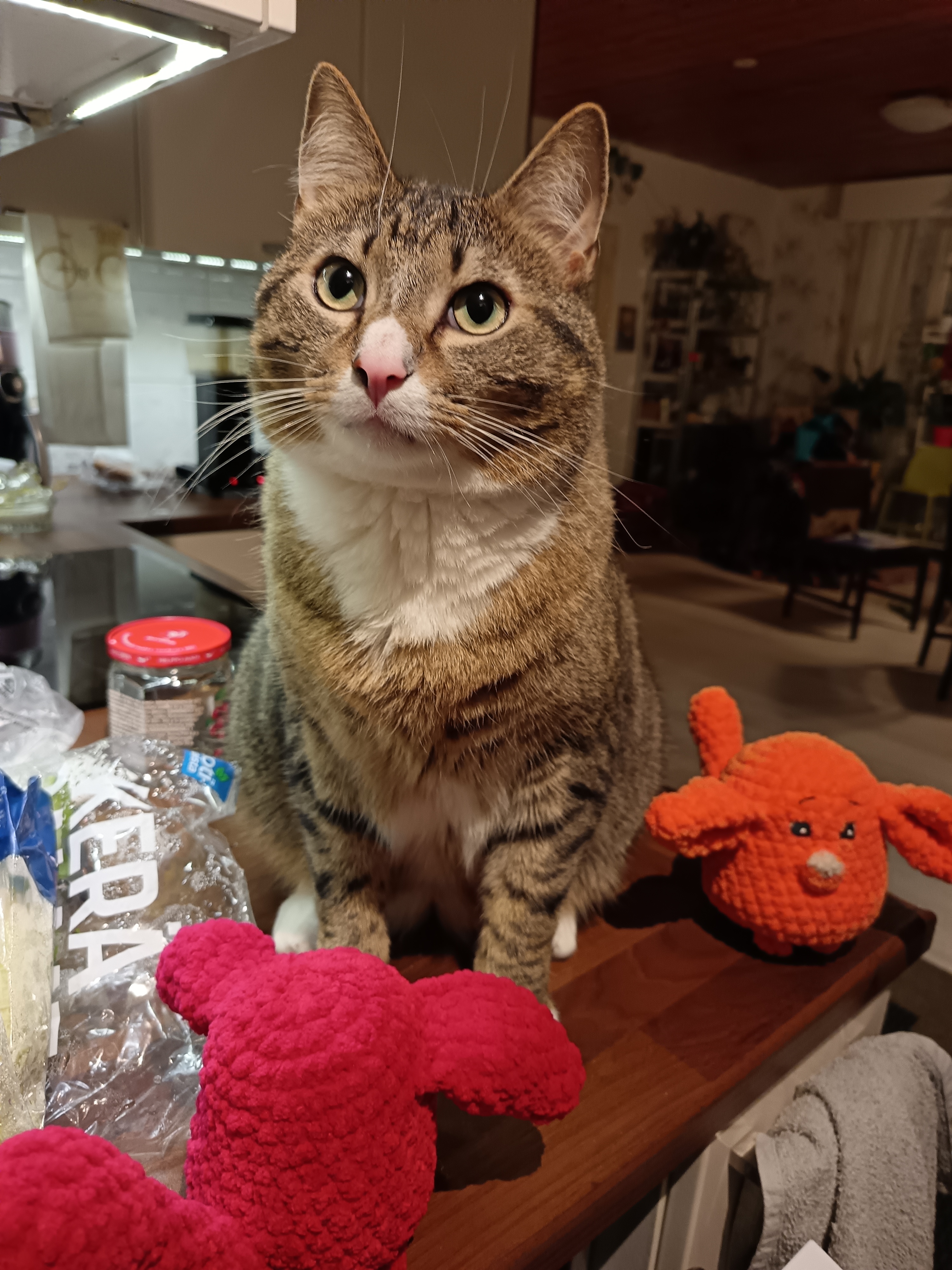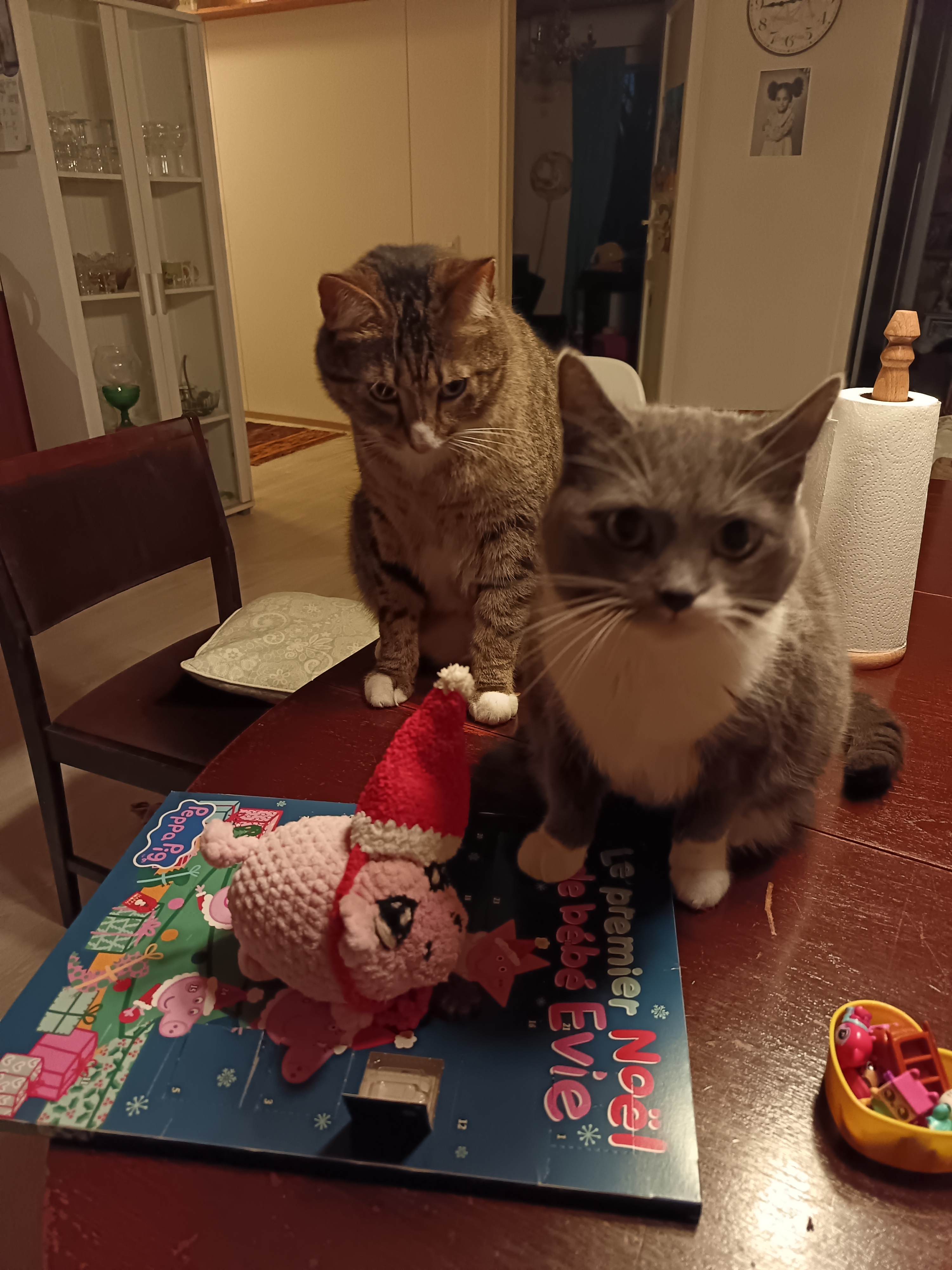 Enää 9 luukkua kalenterissa avaamattomana, laski Muppe heti aamusta. Päivän piristys, pieni suklaa oli tänään varsinkin ollut herkullinen. Talon 2 kissaa olivat nimittäin valloittaneet kalenterin eikä Muppe meinannut saada kalenteriaan niiden alta ollenkaan. Mokomat kissat patsastelivat tyytyväisenä kalenterin päällä istuen, eivätkä liikkuneet mihinkään, vaikka Muppe oli yrittänyt vetää sitä ja työntää kissojakin. Lopuksi emäntä oli joutunut nostamaan kissat sivuun kalenterin päältä. Muppe oli vauhdilla vetäissyt suklaansa suuhunsa juuri ennen kuin toinen kissoista oli parkkeerannut peppunsa takaisin kalenterin päälle. Ihan kuin kalenteri olisi ollut pöydällä vain niitä varten.