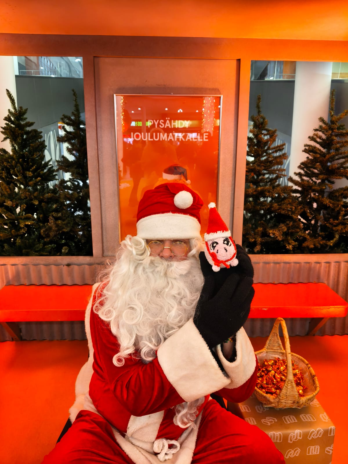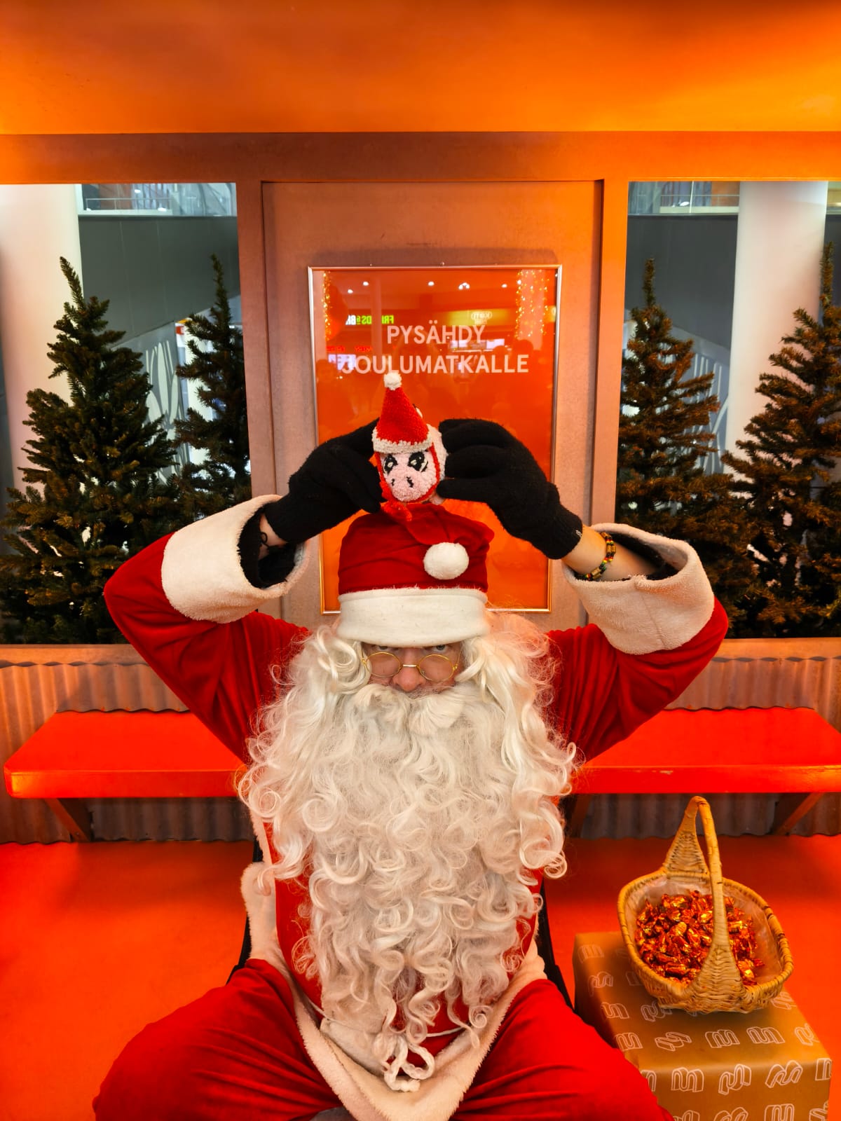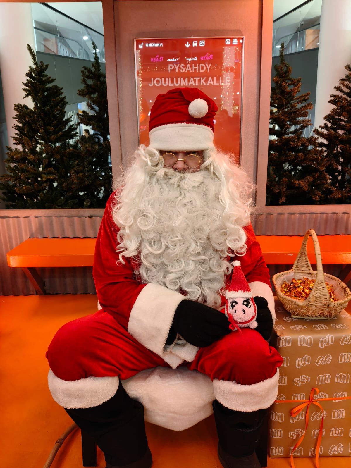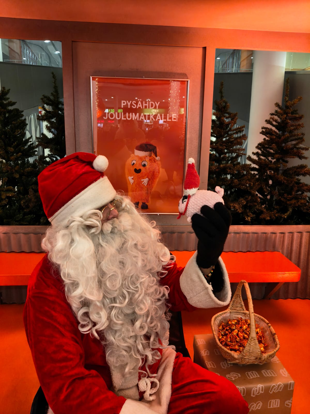 -Mitä siellä on? Muppe ihmetteli. Jo pelkkä kauppakeskus oli hänelle juhlaa, hän olikin halunnut uudestaan sinne katsomaan hienoja koristeita.